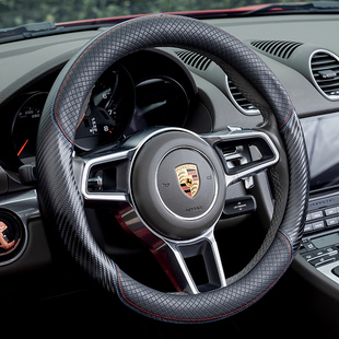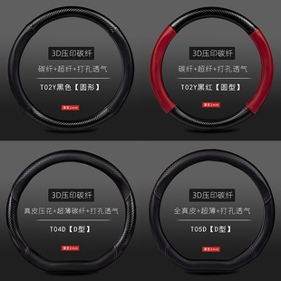 用品 通用改装 超薄汽车方向盘套男士 碳纤真皮把套D型防滑透气四季