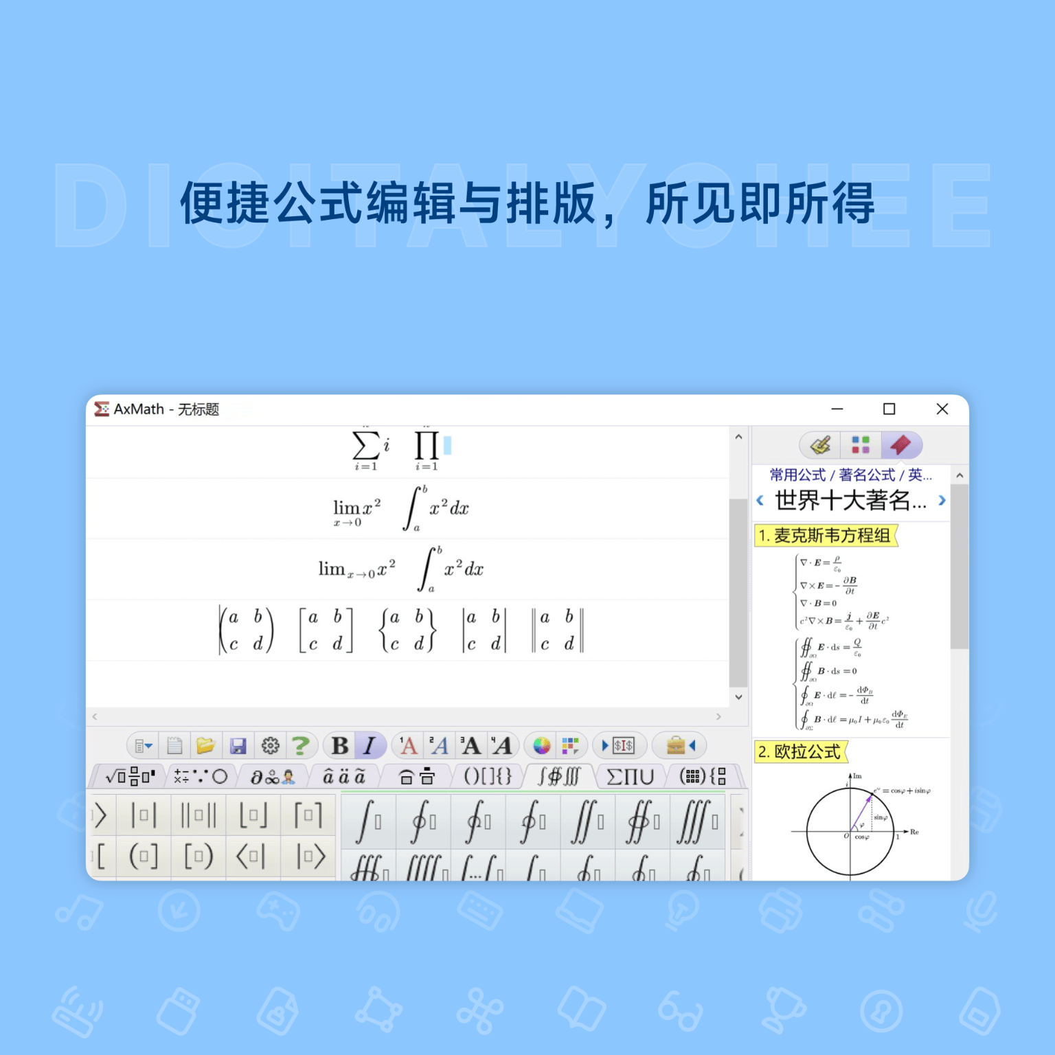 数学公式 AxMath 编辑软件 AxGlyph word 数码 几何画图嵌入 荔枝