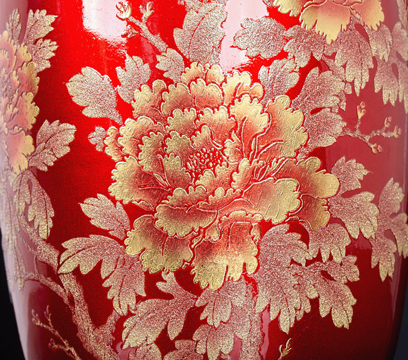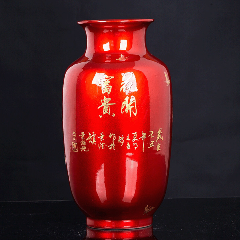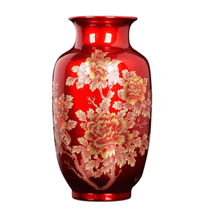 景德镇陶瓷器水晶釉花开富贵花瓶摆设现代家居装 饰客厅工艺品摆件