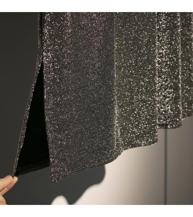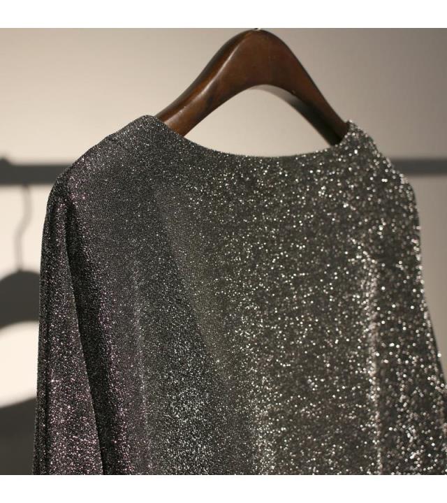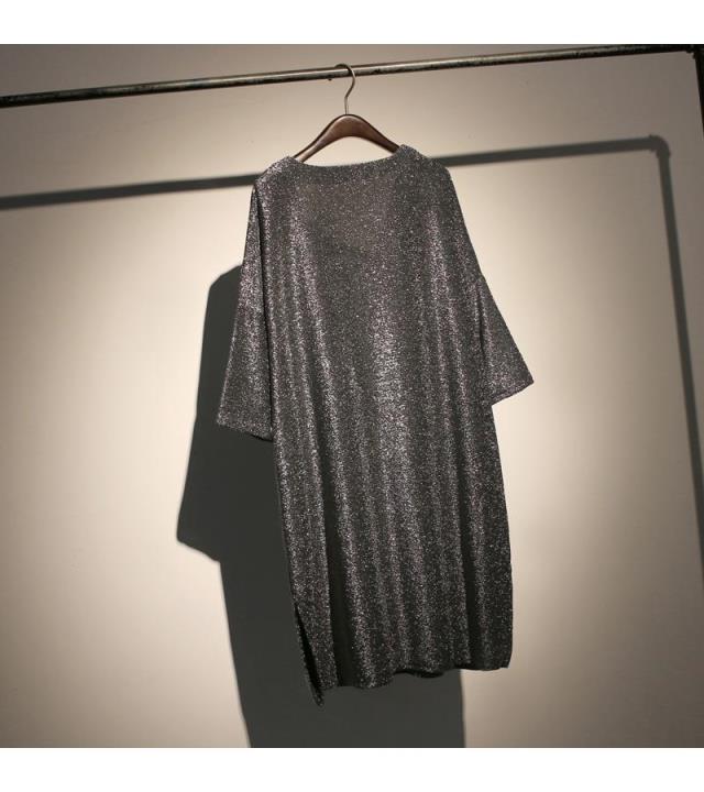 连衣裙夏 宽松大码 宽松裙 T恤裙女中长款 欧美复古亮丝V领七分袖