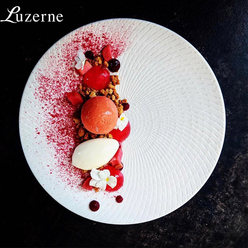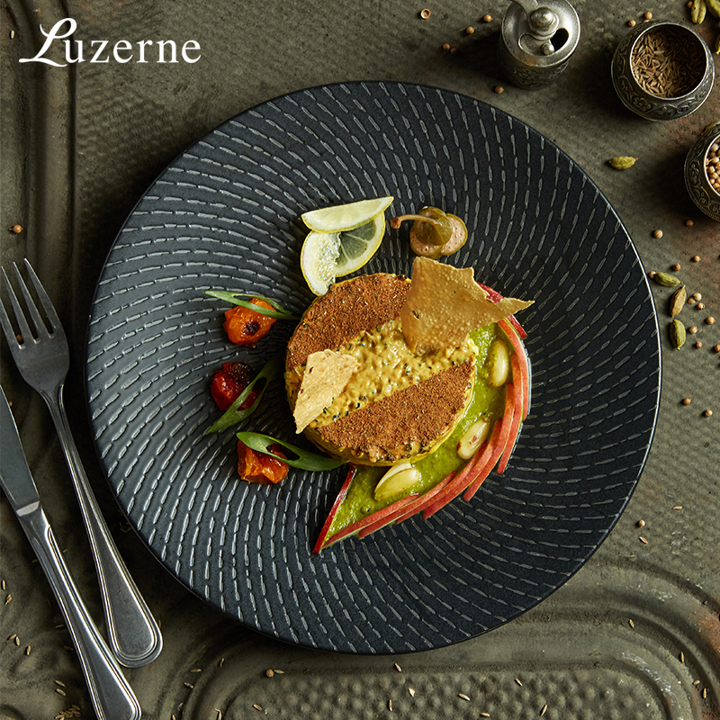 千屿奶油风陶瓷盘子手捏纹可微波菜盘家用高颜值圆盘餐具2个装