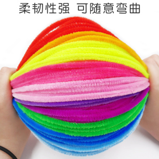 儿童手工diy彩色毛绒马卡龙色扭扭棒花束毛条毛根加密材料包