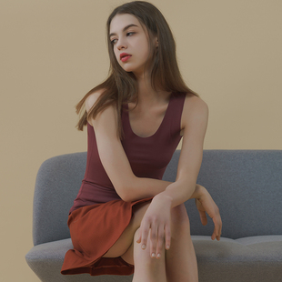 ubras带杯棉感吊带背心女外穿无缝一体织挂脖上衣女老年人背心
