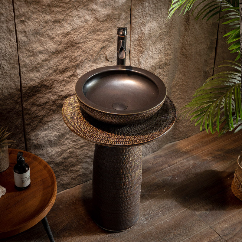 阳台陶瓷立柱盆一体落地式 洗手台盆卫生间艺术花园户外洗脸池庭院