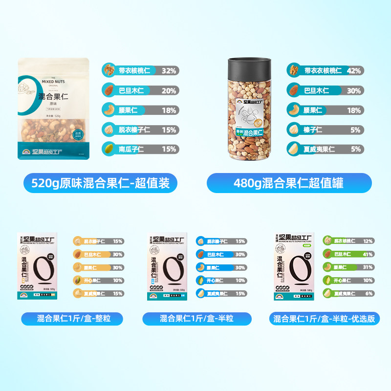 天虹牌520g混合果仁每日坚果1斤装 孕妇干果原味健身零食纯坚果仁