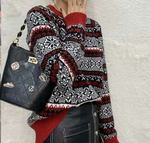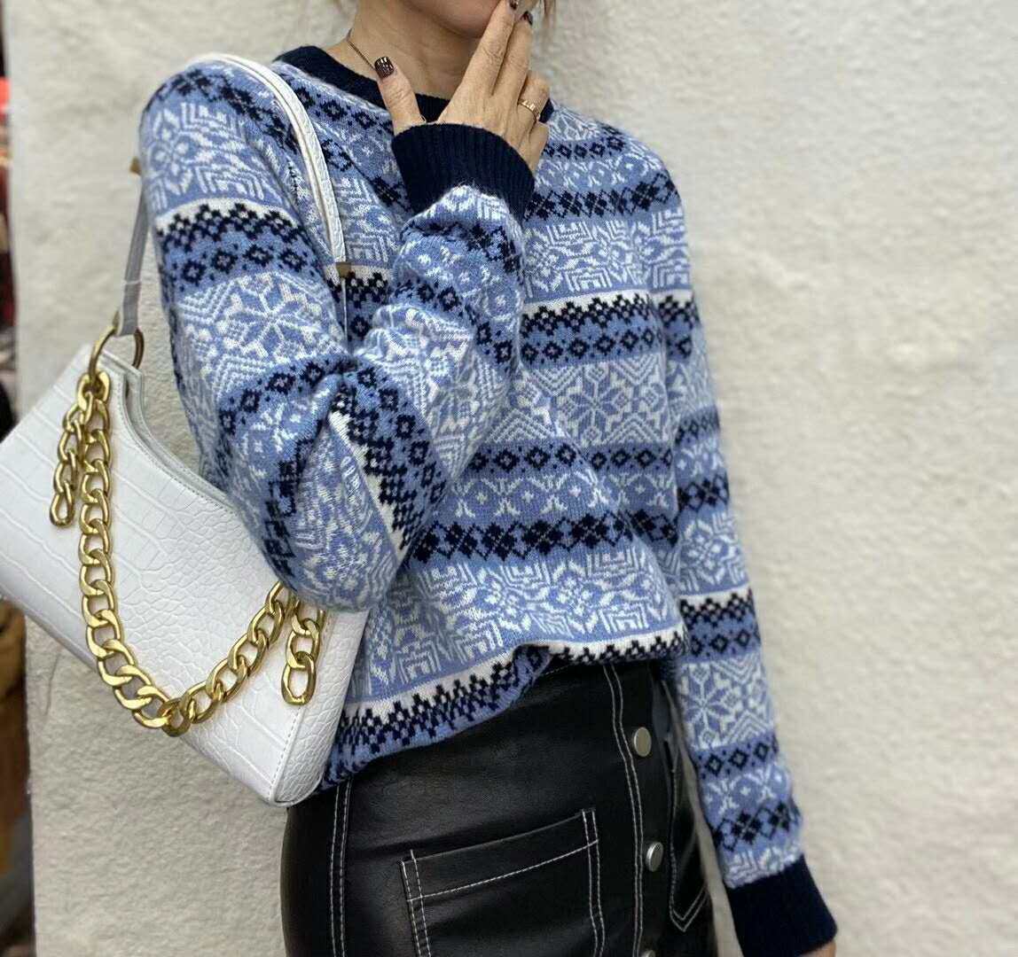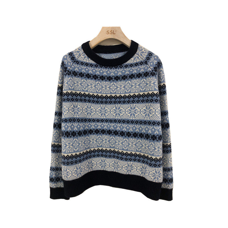 女秋冬打底上衣毛衣 北欧提花圆领针织衫 圣仕莲3317 百分比羊毛衫