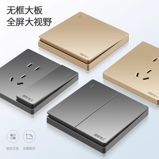 国际电工开关插座面板86型暗装 墙壁家用一开带5五孔多孔USB玫瑰金