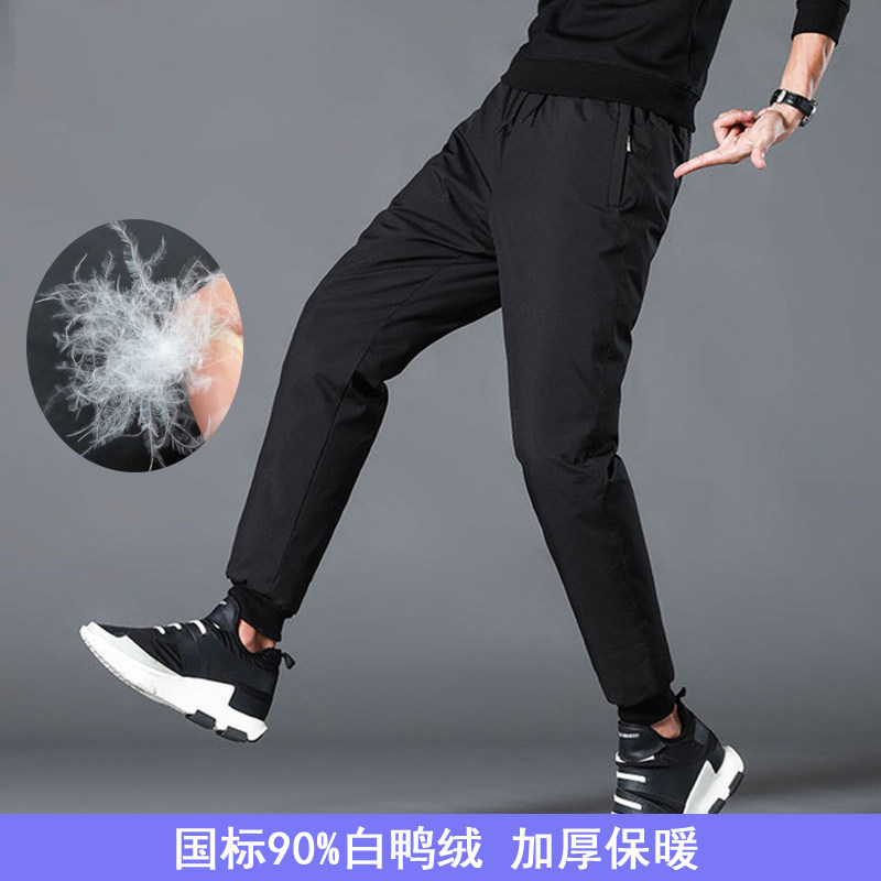 子加绒棉裤 冬季 小脚弹力户外青年休闲运动裤 男外穿修身 潮牌 羽绒裤
