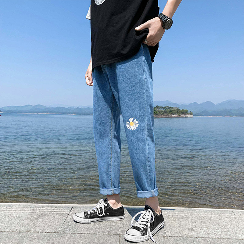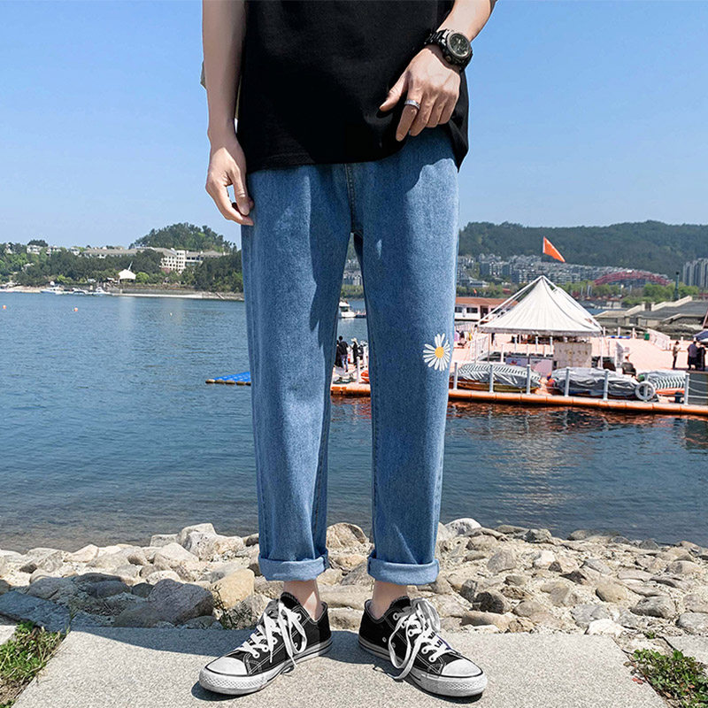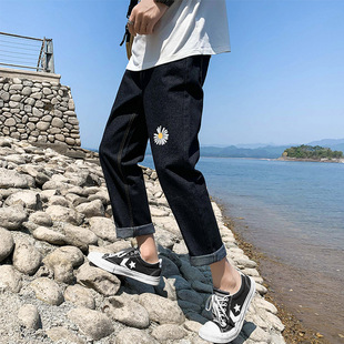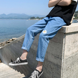 雏菊直筒休闲阔腿男生裤 潮流百搭夏季 子 男潮牌宽松韩版 九分牛仔裤