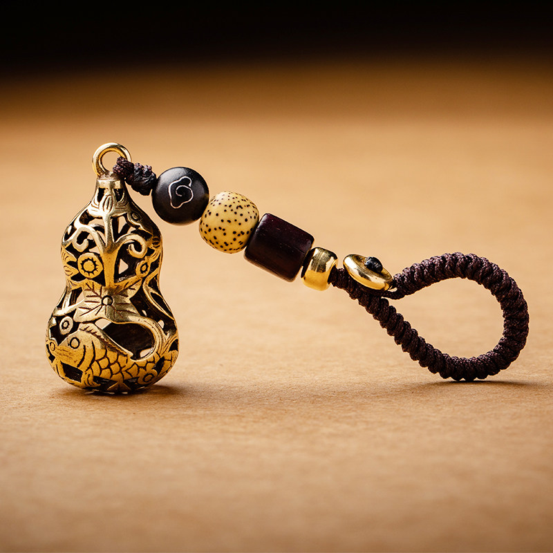 黄铜小葫芦钥匙扣饰品吊坠男女士高档汽车钥匙链挂件 福禄有余