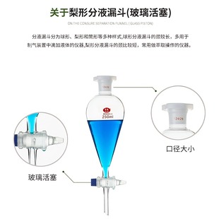 1000 梨形分液漏斗具标口四氟玻璃活塞加厚梨形分液漏斗60 500 250 2000ml大容量玻璃梨形分液漏斗 125