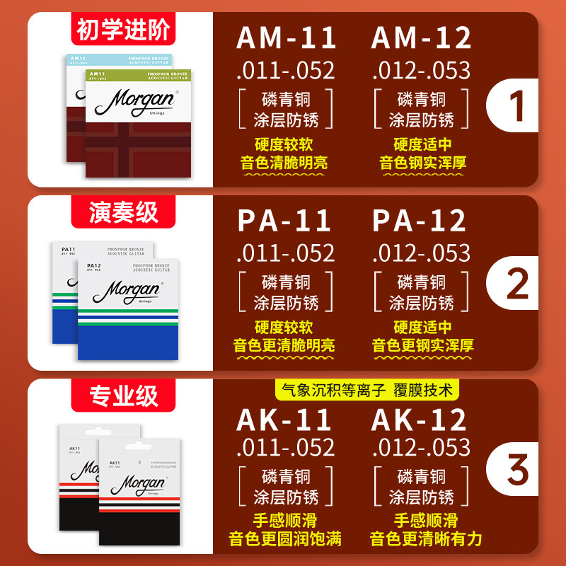 摩根吉他琴弦民谣木吉他一弦单根电吉他一套覆膜防锈吉他弦线全套