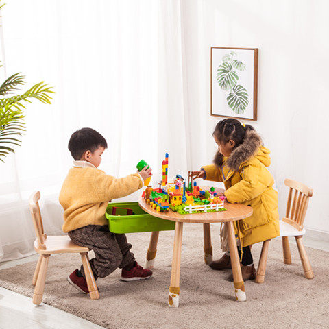 儿童储物书桌椅实木可爱小靠背学习桌宝宝幼儿园积木写字桌椅套装