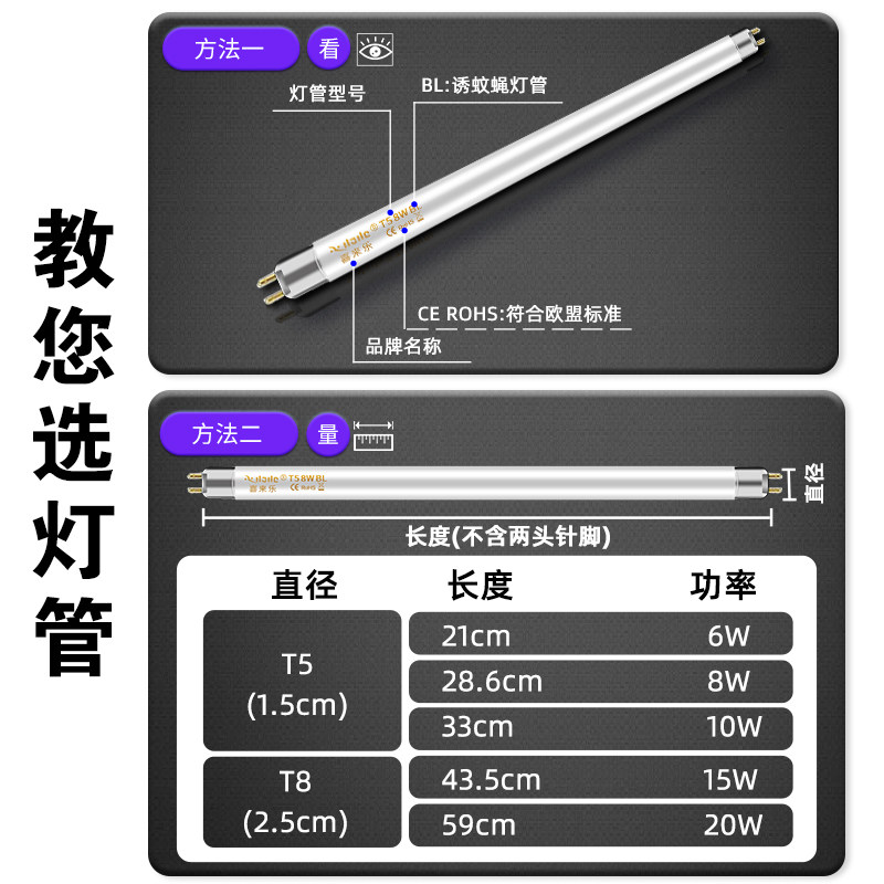 灭蚊灯管紫光8W粘捕式 灭蝇灯商铺专用诱蚊蝇灯管蓝光紫外灯管F5T5