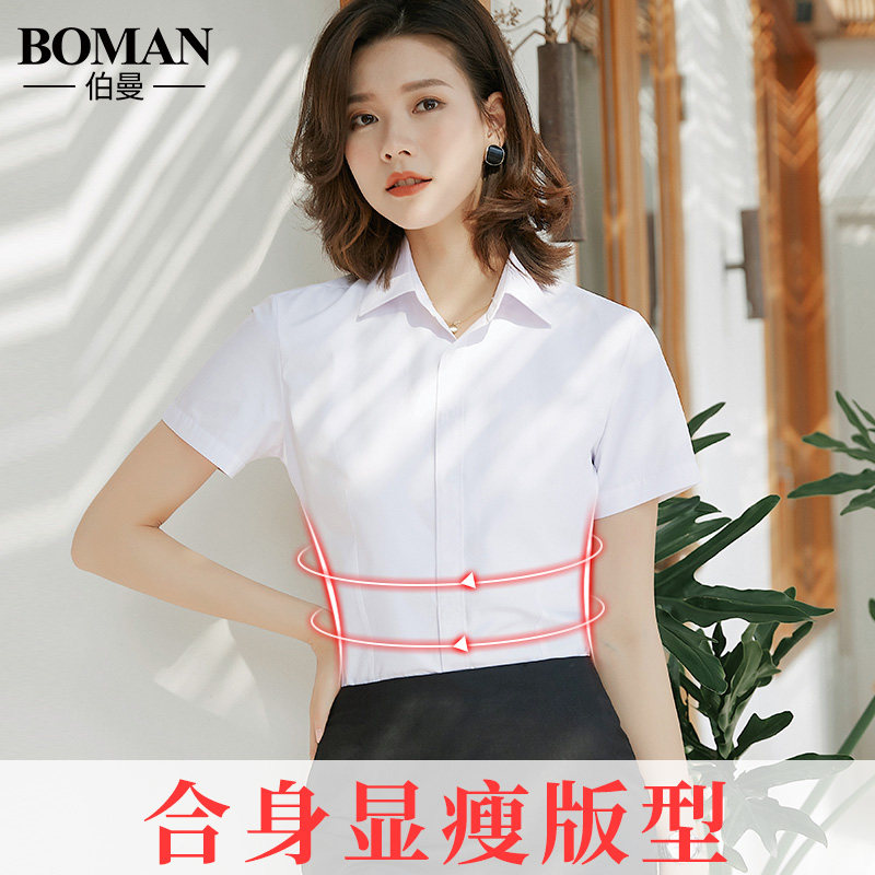 新款 夏季 2020韩版 百搭职业工作服宽松长袖 衬衣 白色衬衫 正装 女短袖