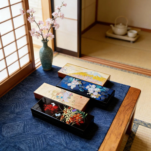 日本进口山中漆器金箔项链首饰盒长方形珠宝手链收纳盒笔盒储物盒