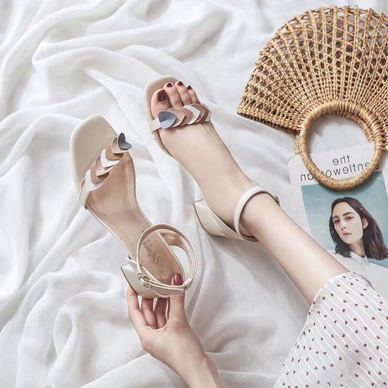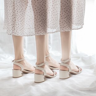 女2020年新款 高跟鞋 夏季 中跟粗跟夏天小码 一字扣带仙女风时装 凉鞋