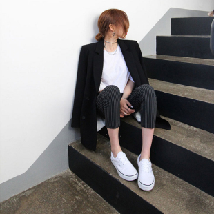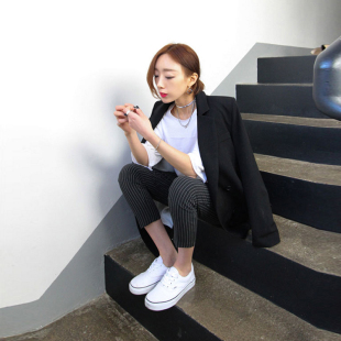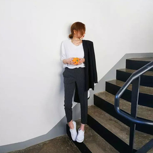 韩版 子女ins超火宽松九分小脚哈伦裤 条纹修身 女网红裤 休闲裤 秋季