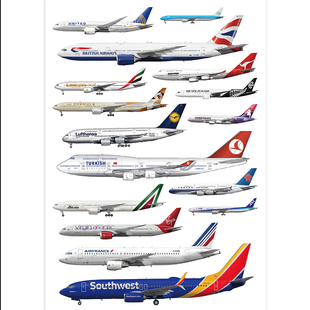 航空公司飞机模型贴画旅行箱行李箱贴纸酷炫滑板墙壁冰箱贴纸防水