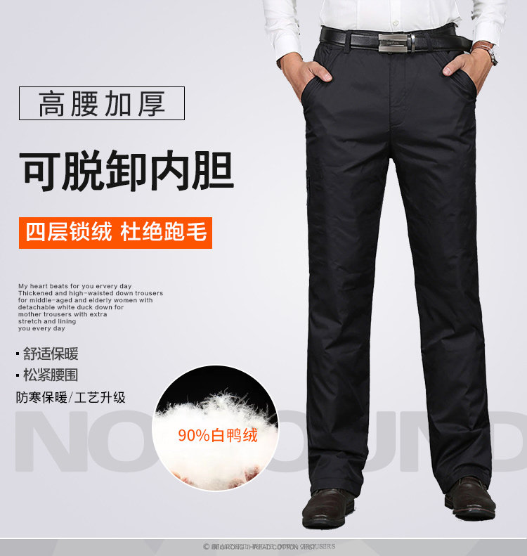 棉裤 羽绒裤 男外穿加厚高腰可脱卸内胆中老年人白鸭绒保暖宽松大码