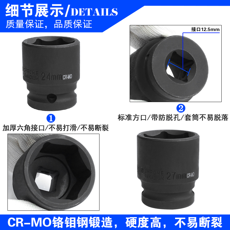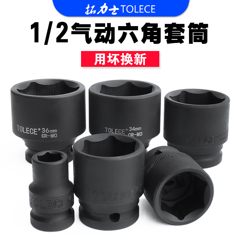 拓力士小风炮套筒头气动重型套筒1 2寸短大飞六角电动扳手17MM19M