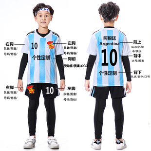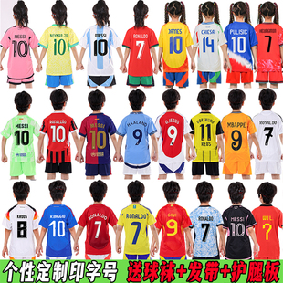 儿童足球服套装 小学生男女梅西定制印字运动会比赛训练队服足球衣