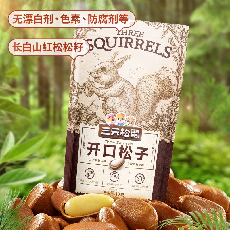 三只松鼠开口松子100g新货东北松子坚果零食特产孕妇健康休闲零食