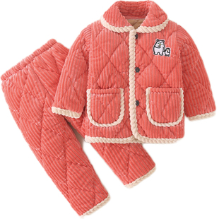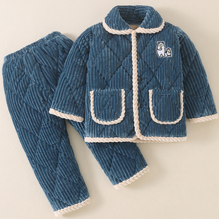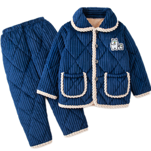 夹棉加绒保暖法兰绒家居服 珊瑚绒男童男孩冬款 儿童睡衣冬季 加厚款