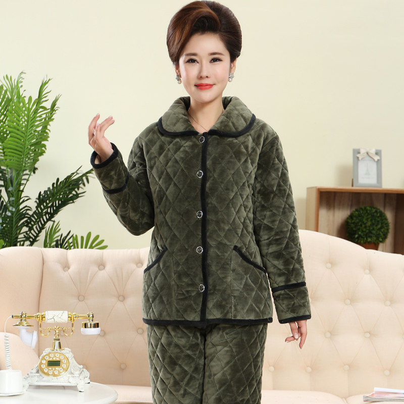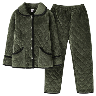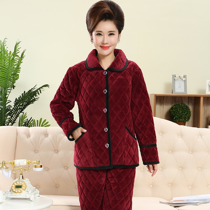 中年人睡衣女士长袖 夹棉S小码 60岁加绒加厚家居服 秋冬季