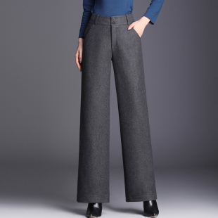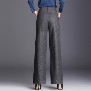 羊毛呢阔腿裤 休闲女裤 显瘦宽腿裤 大码 高腰直筒裤 有内衬秋冬厚窄版