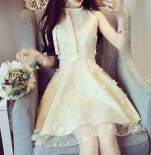 新款 连衣裙女修身 韩版 欧根纱雪纺蕾丝短袖 显瘦公主裙 大码 2024夏装