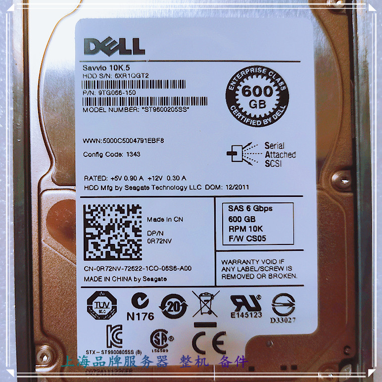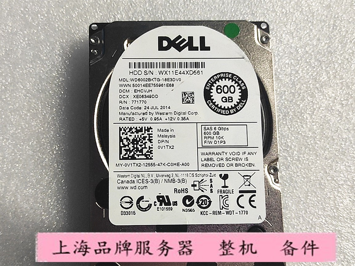 5TFDD R72NV 6GB 96G91 2.5寸硬盘 SAS V1TX2 10K DELL 600G