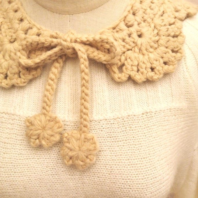 网红人气编织羊驼毛蕾丝钩花假领装 饰领围脖秋冬毛线领娃娃领成品