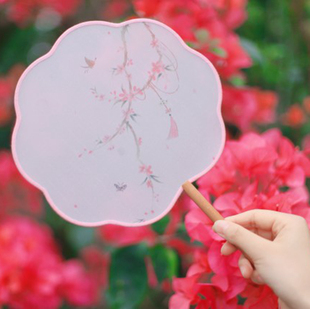 儿童汉服扇子团扇女童走秀拍摄长柄扇舞蹈绣花古风宫扇六一活动扇
