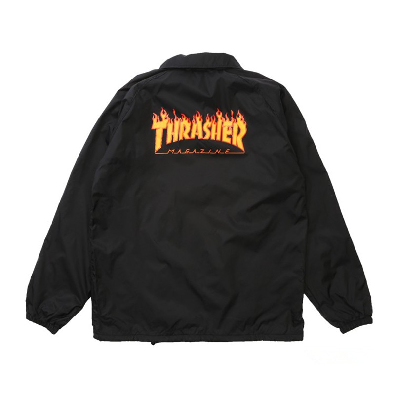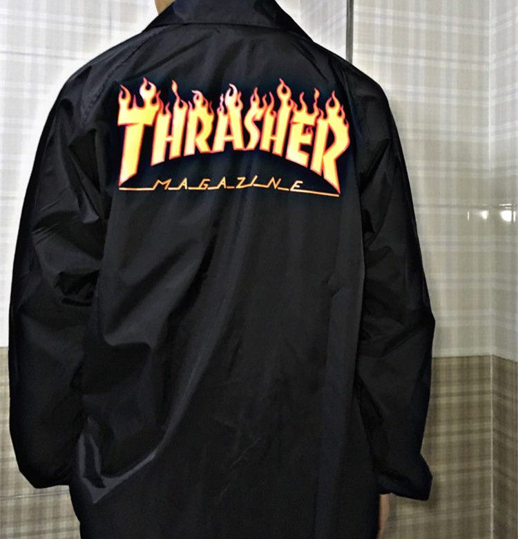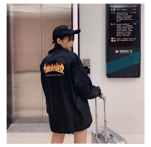 火焰大Logo薄款 美版 Thrasher 教练夹克外套情侣款 羔羊House