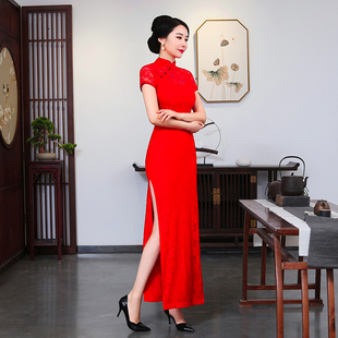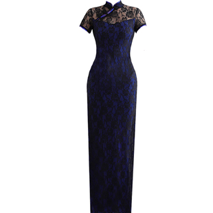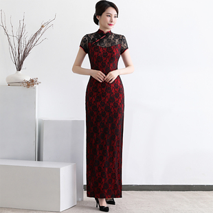 大弹力扎染旗袍中式 走秀演出 女老上海传丝绒复古优雅气质改良长款