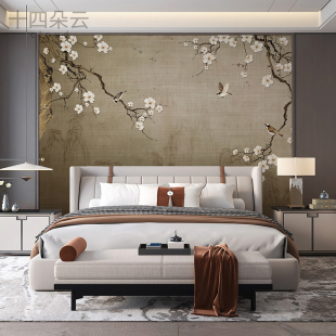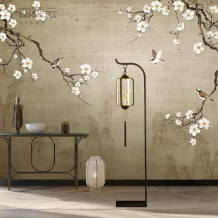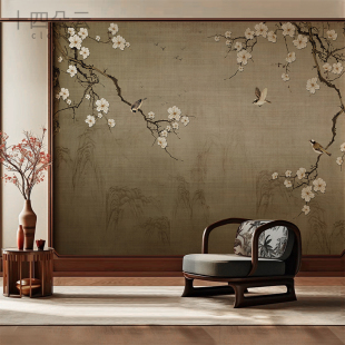 中式 花鸟墙纸影视墙客厅电视背景墙壁纸宋代美学定制壁画卧室墙布