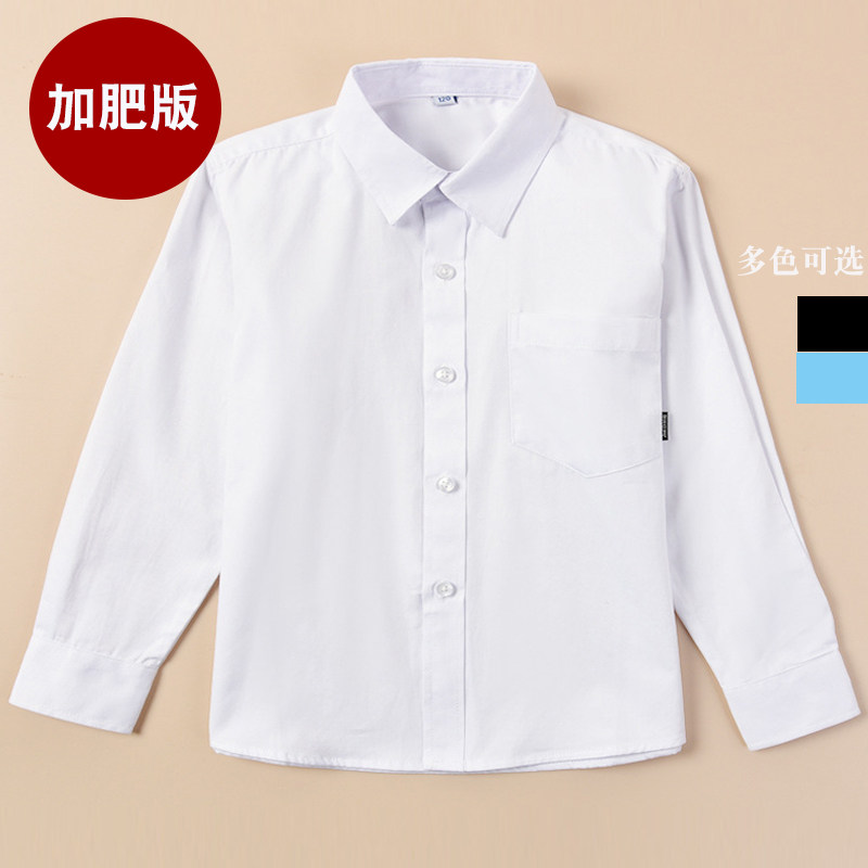 胖童男童白衬衫 校服中大童宽松加肥纯棉儿童男孩黑色衬衣 加绒长袖