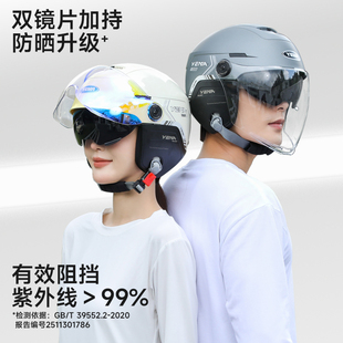 3C认证隐藏内推镜片头盔女电动车骑行半盔冬季 围脖电瓶车安全帽男