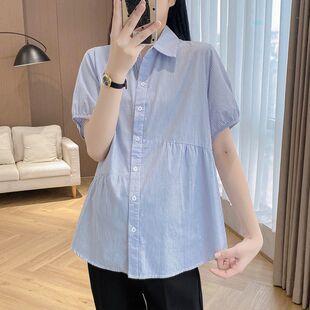 套头雪纺衬衫 LILY春夏新款 掐腰蕾丝白色上衣泡泡短袖 全棉法式 女装