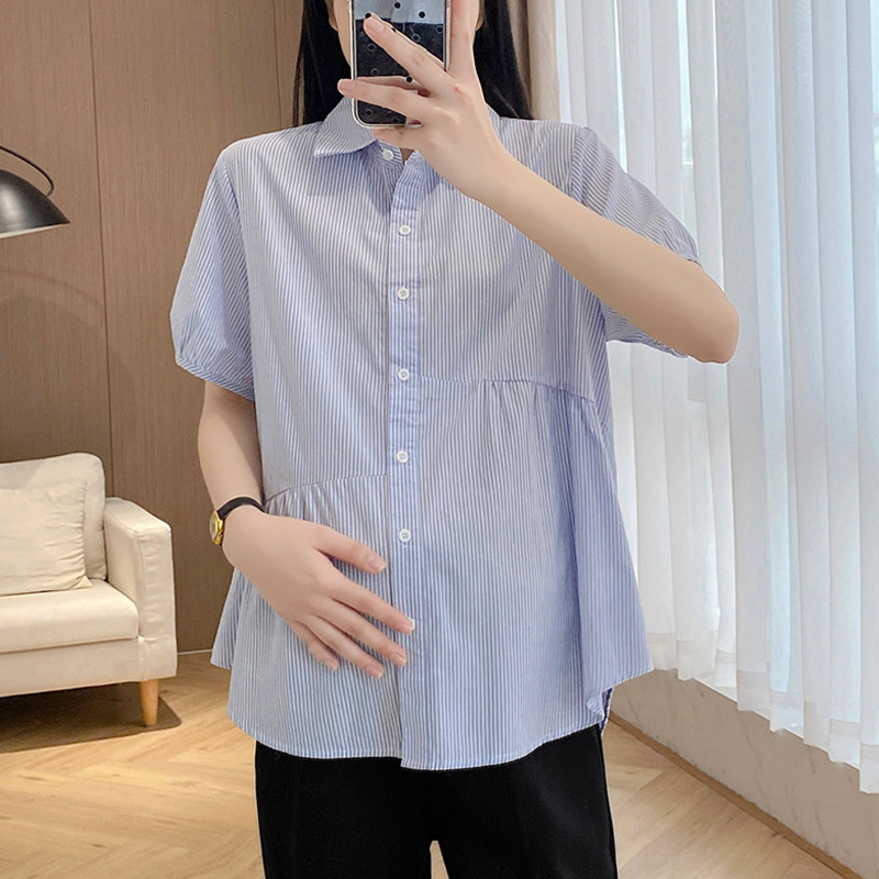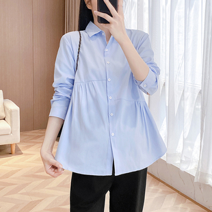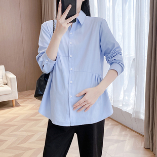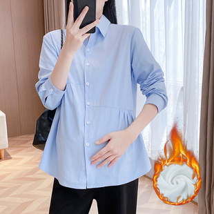 大码 条纹长袖 孕妇装 上班工作时尚 衬衣 职业装 2025春秋加绒加厚冬季