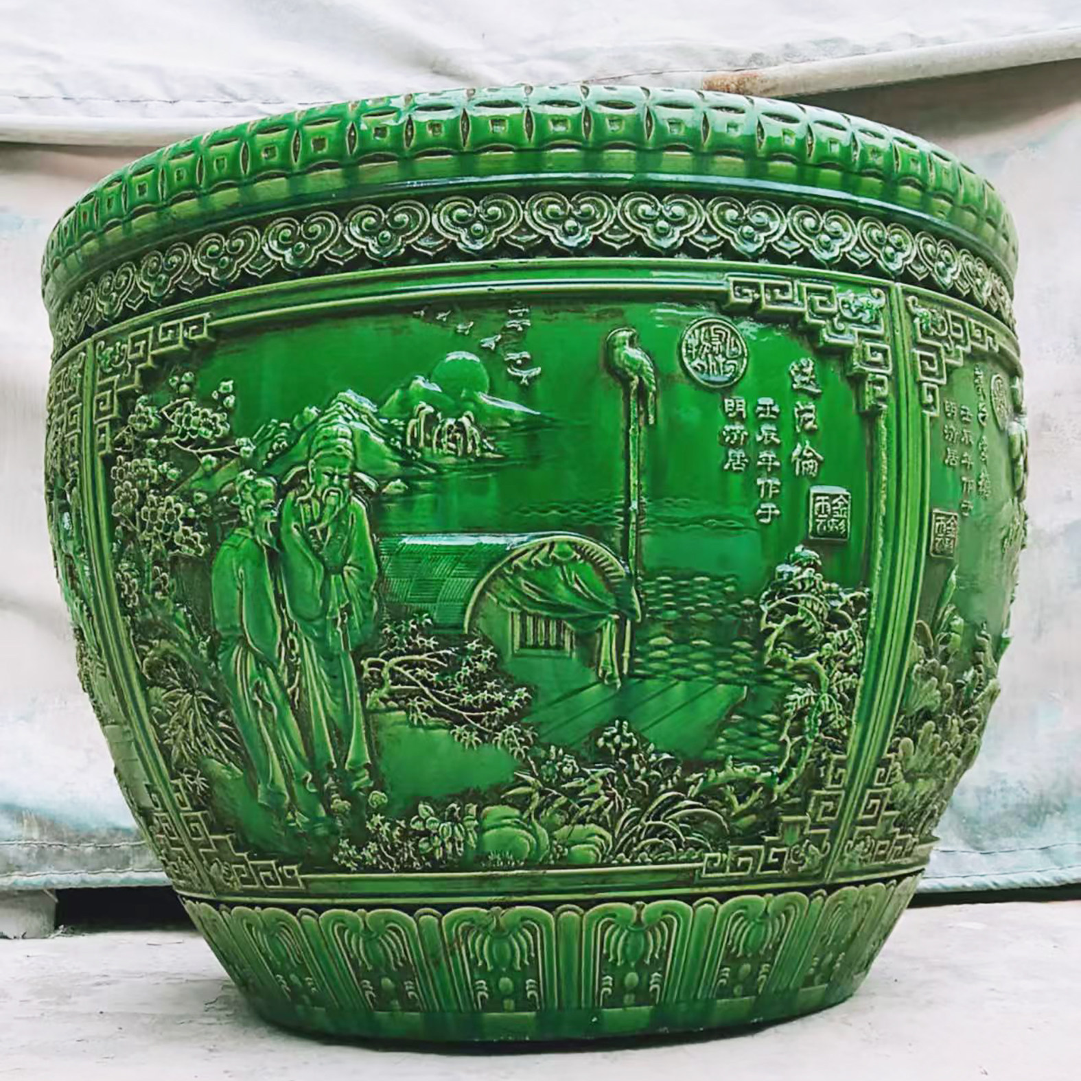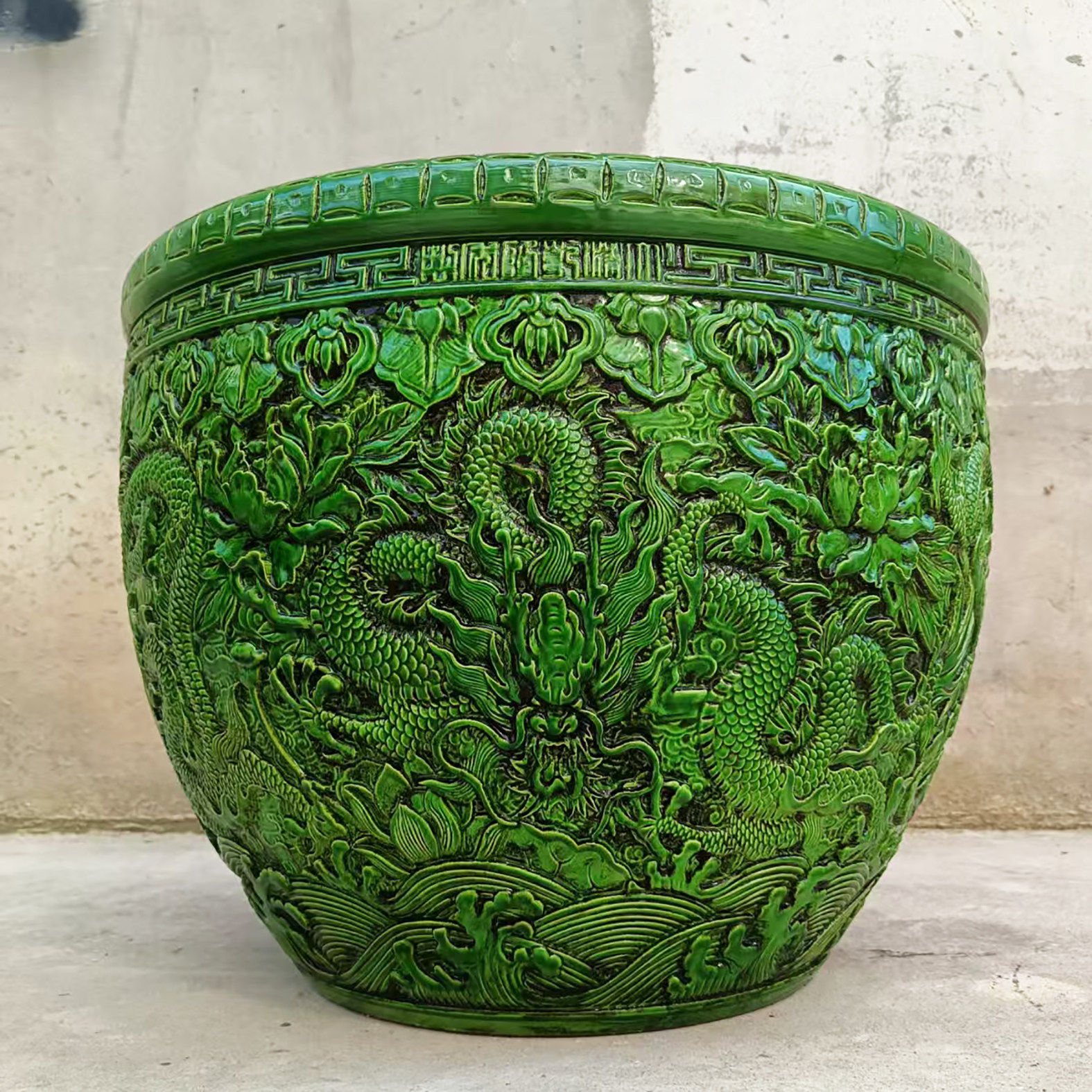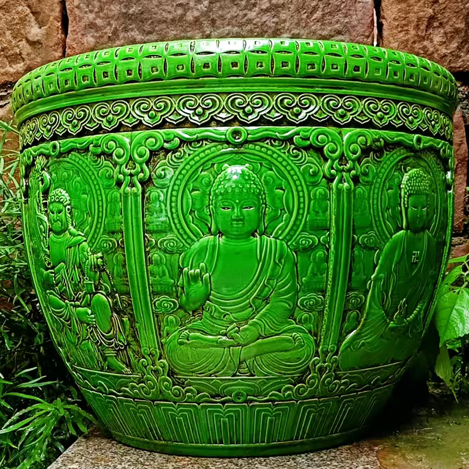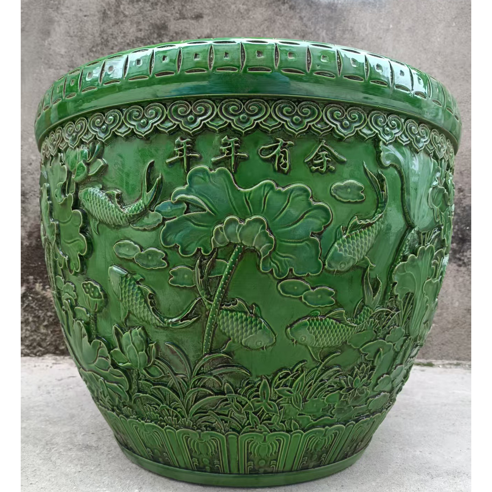 景德镇高端精雕瓷水缸金鱼缸荷花碗莲睡莲盆乌龟缸酒店甲鱼缸摆件