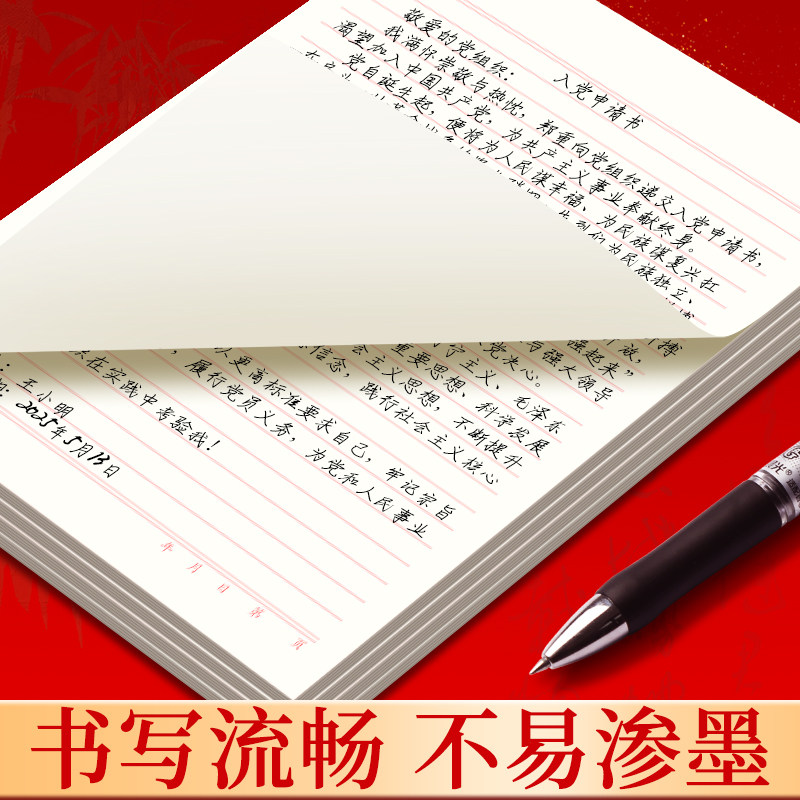 信纸稿纸信笺纸信签纸入团申请书信稿纸专用纸大学生用手写信入党党员材料草稿本红格横格双线横线红色a4信封