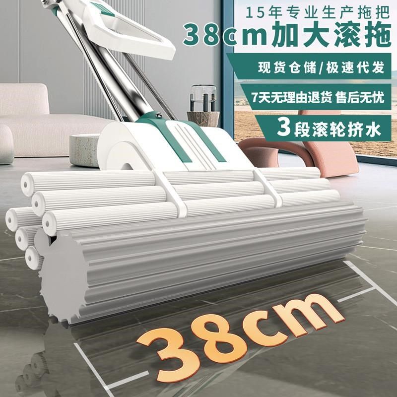 三排轮超大号海绵拖把家用免手洗懒人滚轮式 吸水胶棉拖地拖