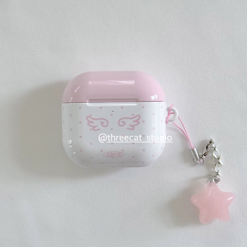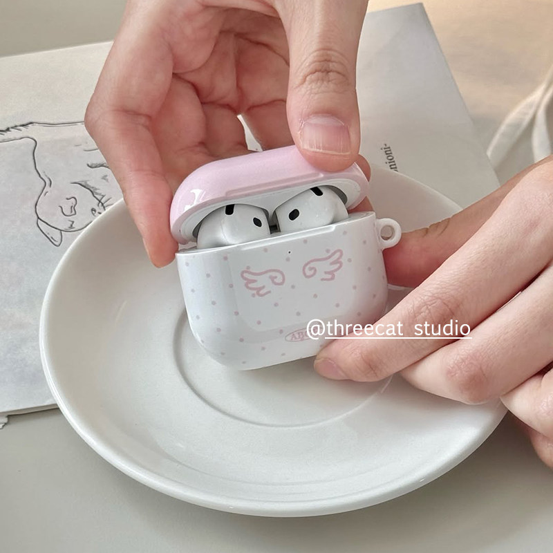 pro2保护套airpods 韩ins设计天使翅膀古早小波点pro3进口菲林耳机壳适用于苹果1 4代airpods 4代硬亮