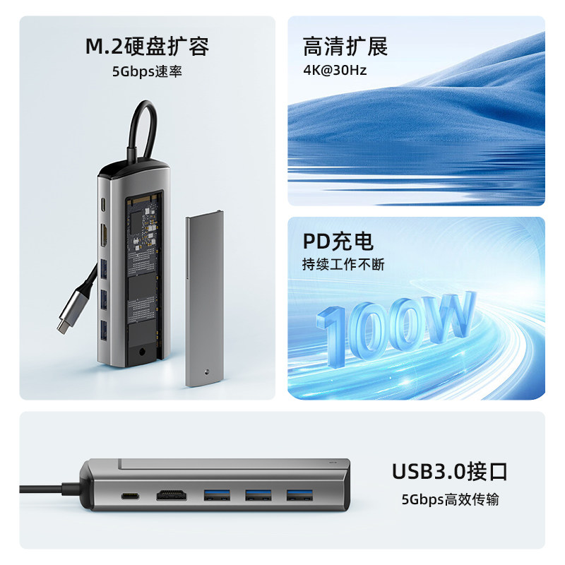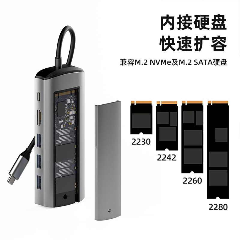 Aura元 启版 联想ThinkPad c扩展坞ssd固态M.2移动硬盘盒NVMe 2in1 笔记本电脑type SATA双协议转换器HUB