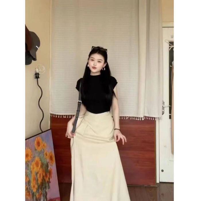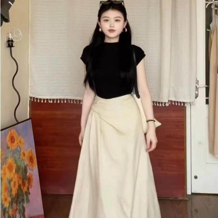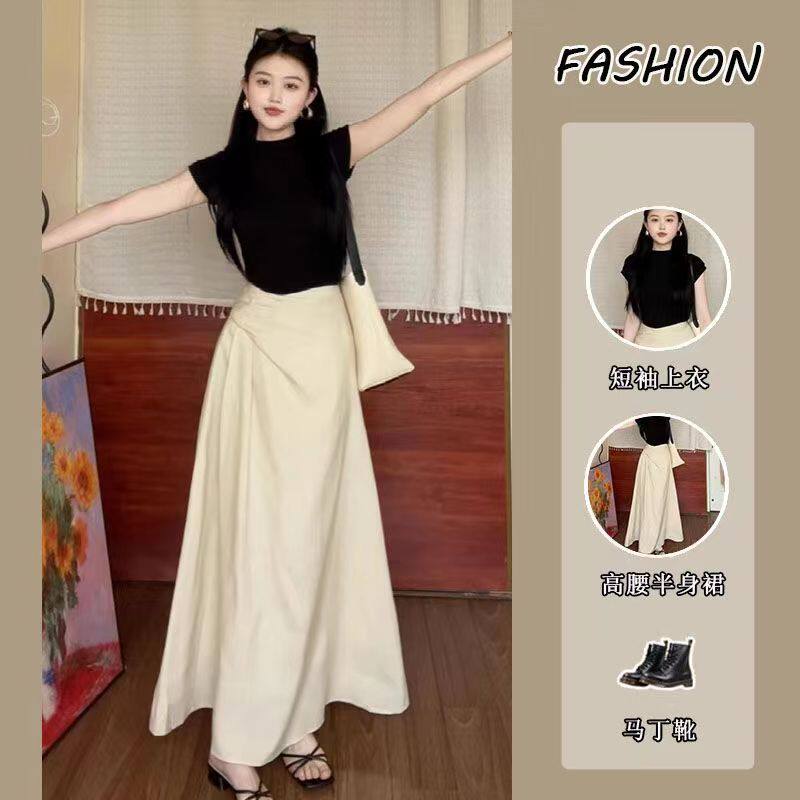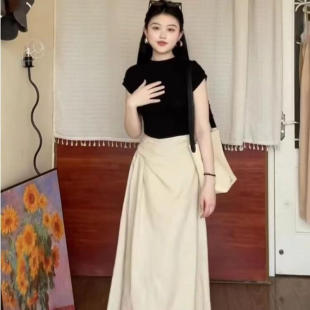 黑色显瘦上衣高腰显瘦半身裙女两件套 新款 纯欲风辣妹套装 2025夏季