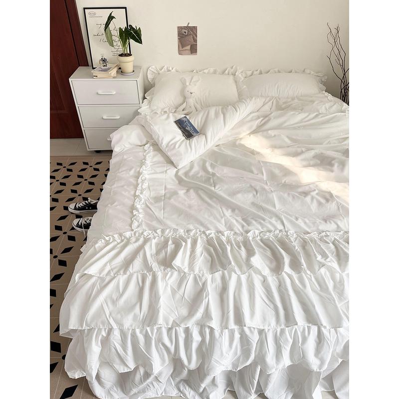 ip9d少女心四件套复古法式 纯色床裙花边公主风被套床单床上