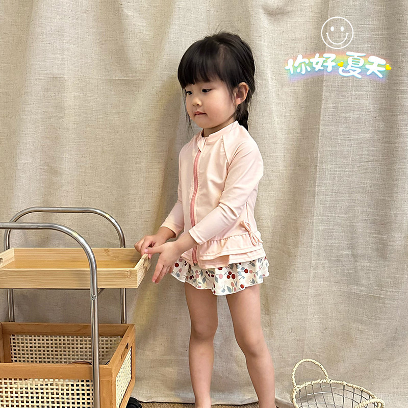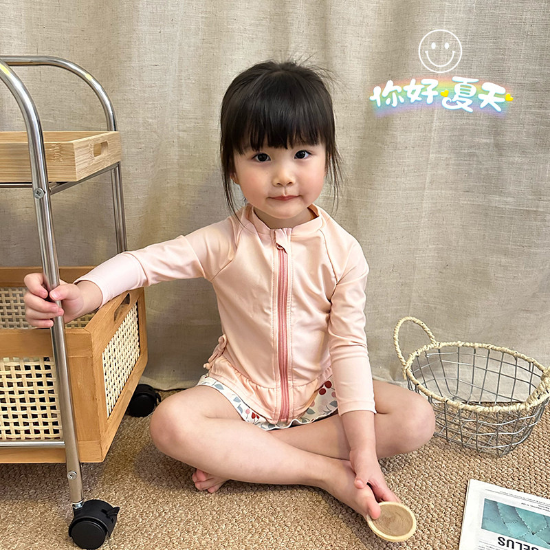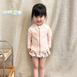 儿童女童泳衣分体ins风碎花韩系夏季 防晒女孩游泳衣 女宝海滩长袖