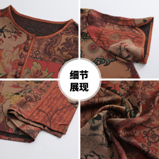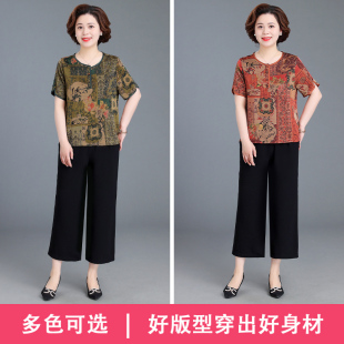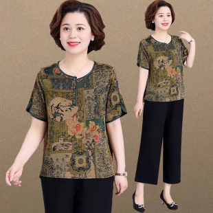 短袖 奶奶新中式 雪纺小衫 女大码 国风两件套 休闲套装 中老年妈妈夏季